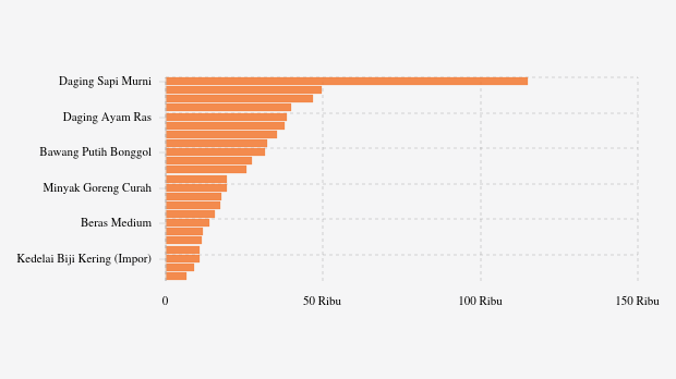 - Gula Konsumsi: Rp17.364 per kg (naik 0,09%)
