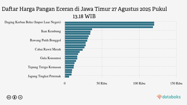 Berikut daftar lengkap harga 25 bahan pangan di Jawa Timur menurut Bapanas 27 Agustus 2025 pukul 13.18 WIB.