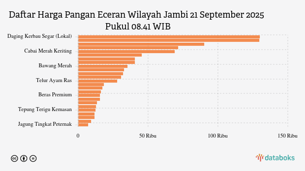 Berikut daftar lengkap harga 25 bahan pangan di Jambi menurut Bapanas 21 September 2025 pukul 08.41 WIB.