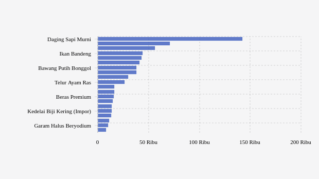 - Gula Konsumsi: Rp16.370 per kg (turun 2,85%)