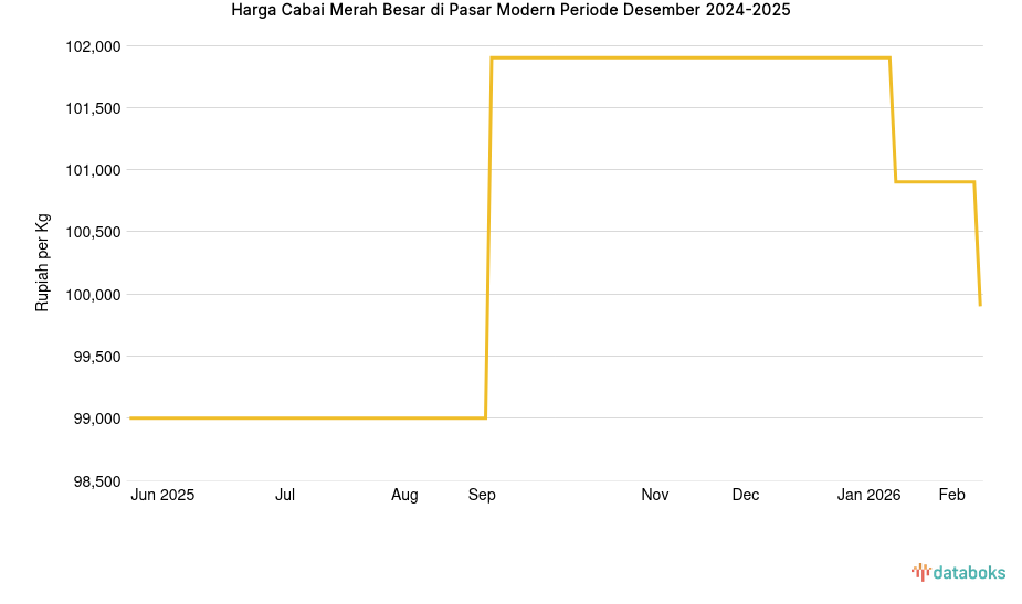 Harga Cabai Merah Besar di Pasar Modern Periode Februari 2025-2026