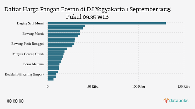 Berikut daftar lengkap harga 23 bahan pangan di D.I Yogyakarta menurut Bapanas 1 September 2025 pukul 09.35 WIB.