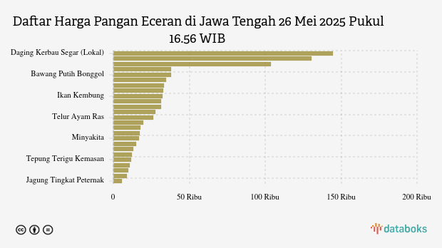 Berikut daftar lengkap harga 25 bahan pangan di Jawa Tengah menurut Bapanas 26 Mei 2025 pukul 16.56 WIB.