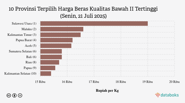 Harga Beras Kualitas Bawah II di Sulawesi Utara Paling Mahal di Indonesia (Senin, 21 Juli 2025)