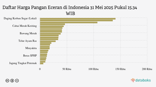 - Daging Kerbau Segar (Lokal): Rp140.769 per kg (naik 0,65%)