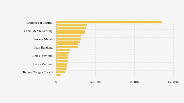 - Gula Konsumsi: Rp17.150 per kg (naik 0,12%)