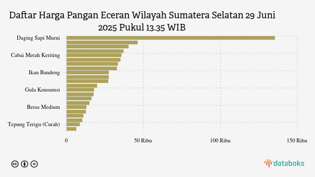 Berikut daftar lengkap harga 22 bahan pangan di Sumatera Selatan menurut Bapanas 29 Juni 2025 pukul 13.35 WIB.