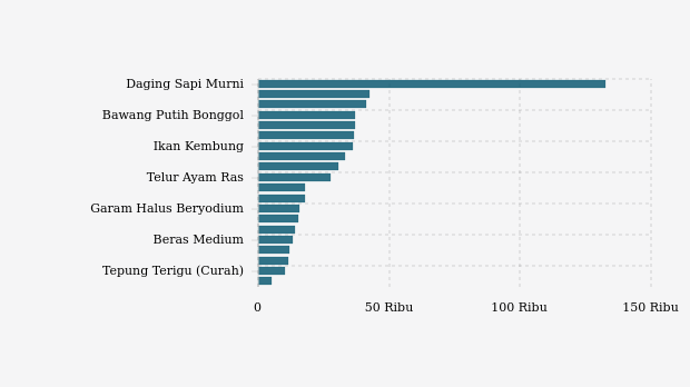 - Gula Konsumsi: Rp17.750 per kg (naik 2,01%)