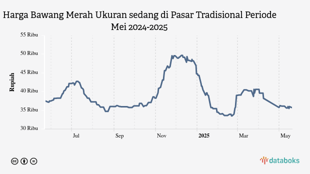 Sedangkan harga bawang merah ukuran sedang harian di pasar tradisional dalam tiga bulan terakhir di Kep. Riau terlihat turun 26.06%. Menurut catatan historis harga pangan di panel harga PIHPS, harga bawang merah ukuran sedang harian di pasar tradisional provinsi Kep. Riau diperdagangkan di harga Rp48,35 ribu.