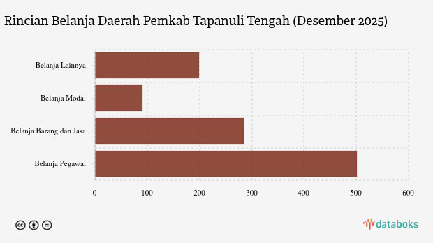 Melansir data Anggaran Pendapatan dan Belanja Daerah (APBD) 2025, anggaran Belanja Daerah Pemerintah Kabupaten (Pemkab) Tapanuli Tengah, Provinsi Sumatera Utara, sebesar Rp1.226,41 miliar.