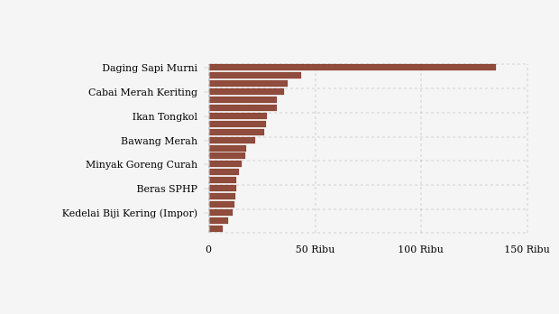 - Daging Sapi Murni: Rp135.300 per kg (turun 0,13%)