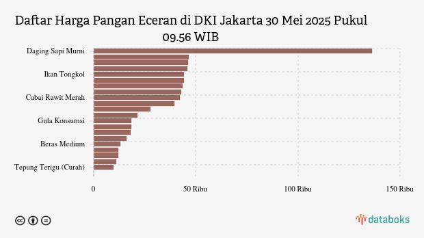 Berikut daftar lengkap harga 22 bahan pangan di DKI Jakarta menurut Bapanas 30 Mei 2025 pukul 09.56 WIB.