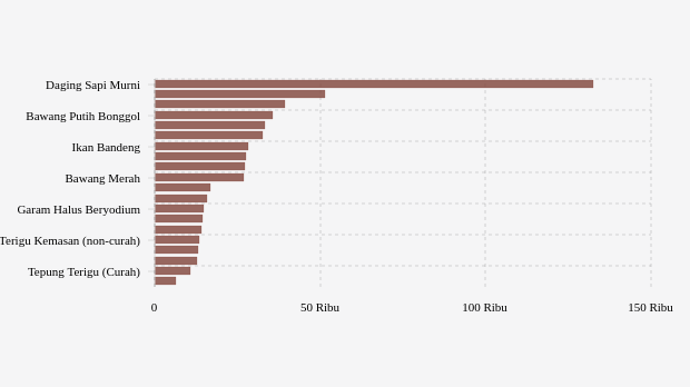 - Daging Sapi Murni: Rp132.630 per kg (turun 0,06%)