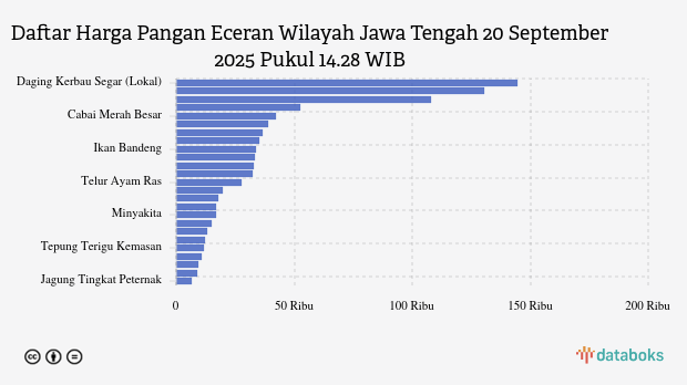 Berikut daftar lengkap harga 25 bahan pangan di Jawa Tengah menurut Bapanas 20 September 2025 pukul 14.28 WIB.