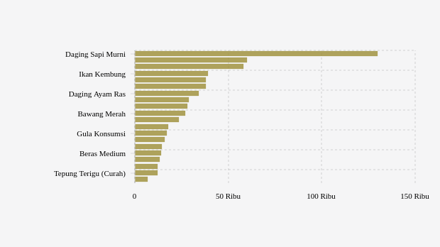 - Daging Sapi Murni: Rp130.000 per kg (naik 0,2%)