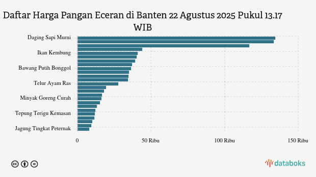 Berikut daftar lengkap harga 25 bahan pangan di Banten menurut Bapanas 22 Agustus 2025 pukul 13.17 WIB.