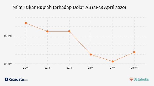 Kurs rupiah dibuka melemah ke level Rp 15.405/US$ pada perdagangan Selasa, 28/4. Peneliti Institute for Development of Economics and Finance (INDEF) Bhima Yudhistira memperkirakan rupiah berpeluang menguat hari ini. Penguatan rupiah dipengaruhi dari pelonggaran kebijakan lockdown yang dilakukan oleh beberapa negara, seperti Italia, Spanyol, dan Selandia Baru.