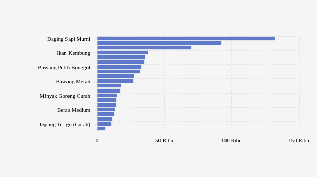 - Gula Konsumsi: Rp17.190 per kg (naik Rp570)