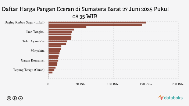Berikut daftar lengkap harga 24 bahan pangan di Sumatera Barat menurut Bapanas 27 Juni 2025 pukul 08.35 WIB.