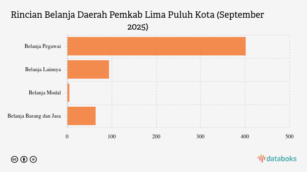 Selama periode Januari 2025 hingga September 2025, realisasi Belanja Daerah Pemkab Lima Puluh Kota sebesar Rp561,73 miliar atau setara 40,72% dari anggaran Belanja Daerah 2025.