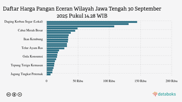 Berikut daftar lengkap harga 25 bahan pangan di Jawa Tengah menurut Bapanas 30 September 2025 pukul 14.28 WIB.