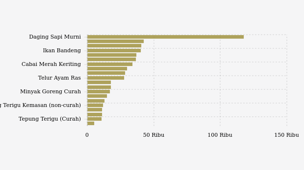 Komoditas yang naik harga yakni daging sapi murni, minyak goreng kemasan sederhana, ikan kembung, ikan tongkol, dan minyak goreng curah.
