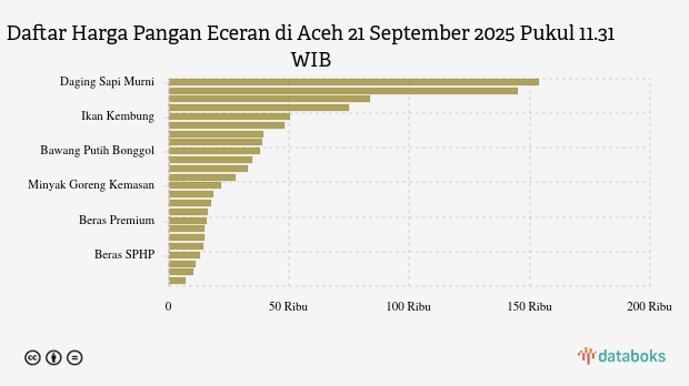 Berikut daftar lengkap harga 24 bahan pangan di Aceh menurut Bapanas 21 September 2025 pukul 11.31 WIB.