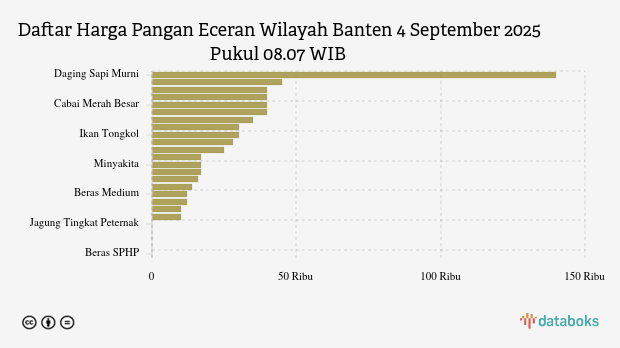 Berikut daftar lengkap harga 25 bahan pangan di Banten menurut Bapanas 4 September 2025 pukul 08.07 WIB.