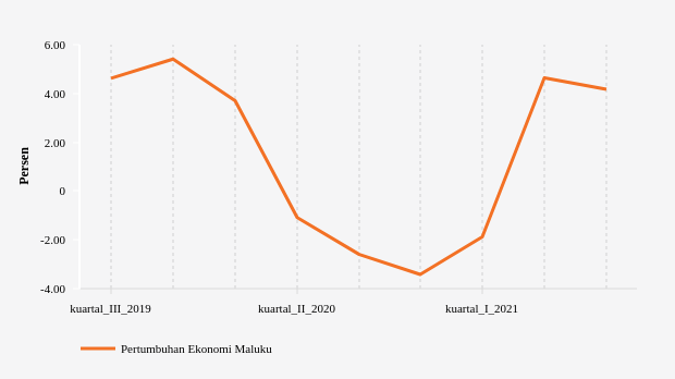 Badan Pusat Statistik (BPS) melaporkan, pertumbuhan ekonomi Maluku sebesar 4,17% secara tahunan (year on year/yoy) pada kuartal III-2021. Pertumbuhan ini melambat dari kuartal sebelumnya yang sebesar 4,64% (yoy).