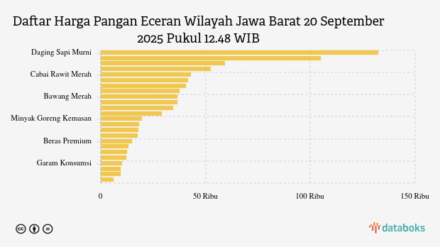 Berikut daftar lengkap harga 24 bahan pangan di Jawa Barat menurut Bapanas 20 September 2025 pukul 12.48 WIB.
