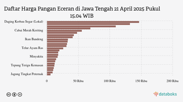 Berikut daftar lengkap harga 25 bahan pangan di Jawa Tengah menurut Bapanas 21 April 2025 pukul 15.04 WIB.