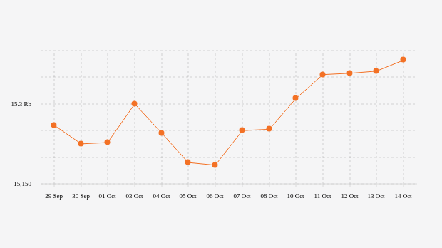 Perkembangan Nilai Tukar Rupiah di Pasar Spot 14 Hari Terakhir (Jumat, 14 Oktober 2022)