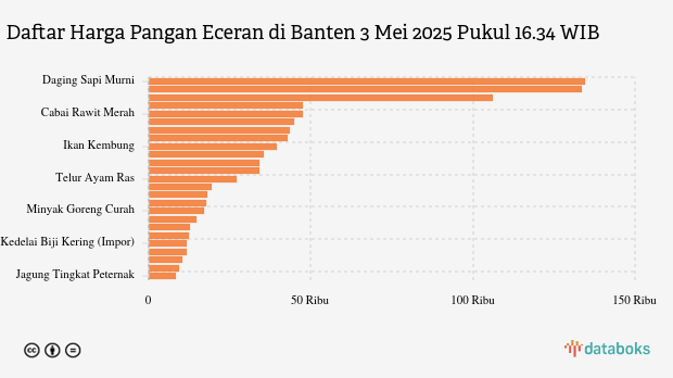 Berikut daftar lengkap harga 25 bahan pangan di Banten menurut Bapanas 3 Mei 2025 pukul 16.34 WIB.