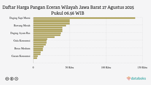 Berikut daftar lengkap harga 24 bahan pangan di Jawa Barat menurut Bapanas 27 Agustus 2025 pukul 06.56 WIB.
