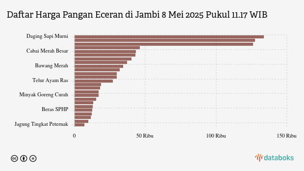 Berikut daftar lengkap harga 25 bahan pangan di Jambi menurut Bapanas 8 Mei 2025 pukul 11.17 WIB.
