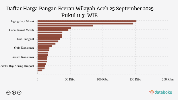 Berikut daftar lengkap harga 24 bahan pangan di Aceh menurut Bapanas 25 September 2025 pukul 11.31 WIB.