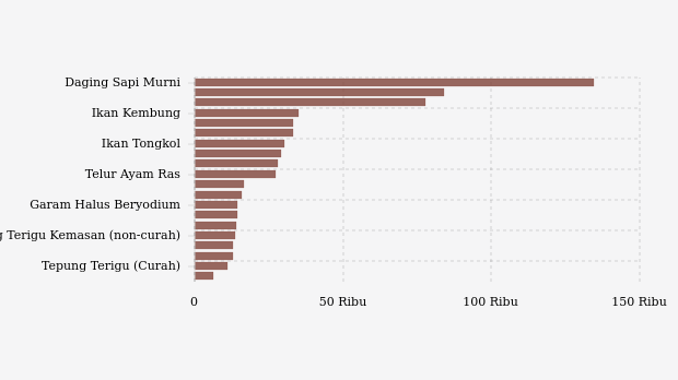 - Gula Konsumsi: Rp16.730 per kg (turun 0,3%)