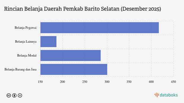 Pada Januari 2026, realisasi Belanja Daerah Pemkab Barito Selatan sebesar Rp1.188,64 miliar atau setara 69,29% dari anggaran Belanja Daerah 2025.