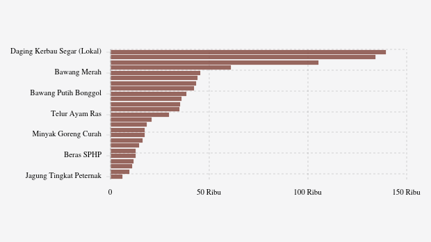 - Daging Kerbau Beku (Impor Luar Negeri): Rp105.253 per kg (turun 0,06%)