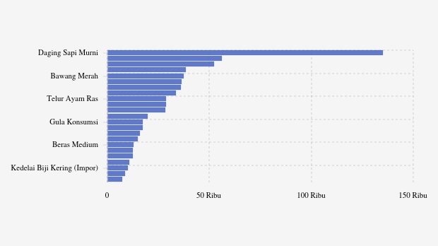 - Gula Konsumsi: Rp17.492 per kg (naik 0,03%)