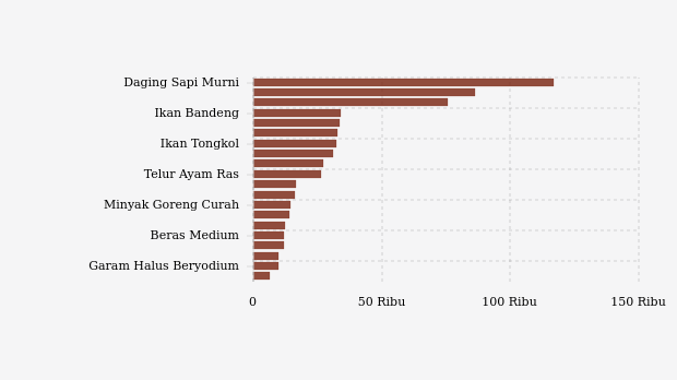 - Gula Konsumsi: Rp16.680 per kg (naik 0,6%)