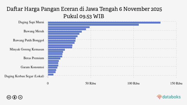 Berikut daftar lengkap harga 25 bahan pangan di Jawa Tengah menurut Bapanas 6 November 2025 pukul 09.53 WIB.