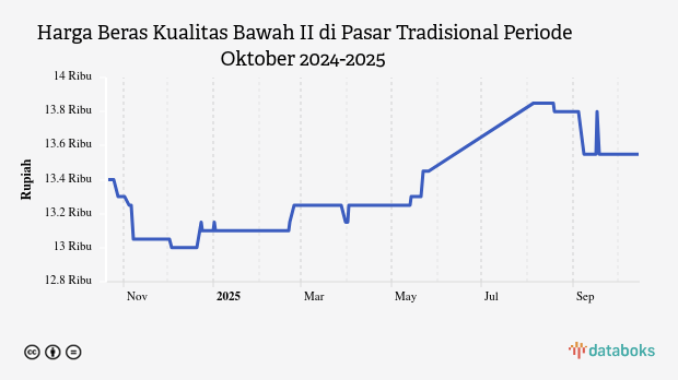 Adapun terhadap harga sebulan terakhir, perkembangan harga beras kualitas bawah II harian di pasar tradisional mengalami penurunan dari sebelumnya yang tercatat sebesar Rp13,8 ribu .