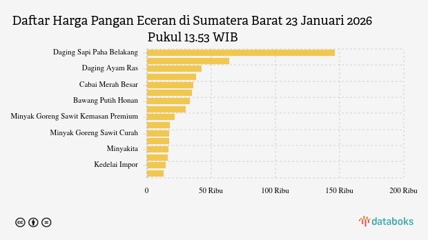 - Daging Sapi Murni: Rp133.130 per kg (turun 0,21%)