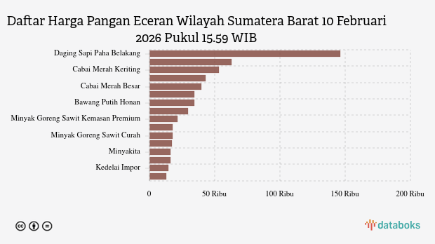Berikut daftar lengkap harga 16 bahan pangan di Sumatera Selatan menurut SP2KP Kemendag 10 Februari 2026 pukul 17.13 WIB.