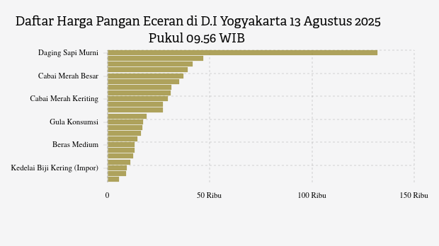 Berikut daftar lengkap harga 23 bahan pangan di D.I Yogyakarta menurut Bapanas 13 Agustus 2025 pukul 09.56 WIB.