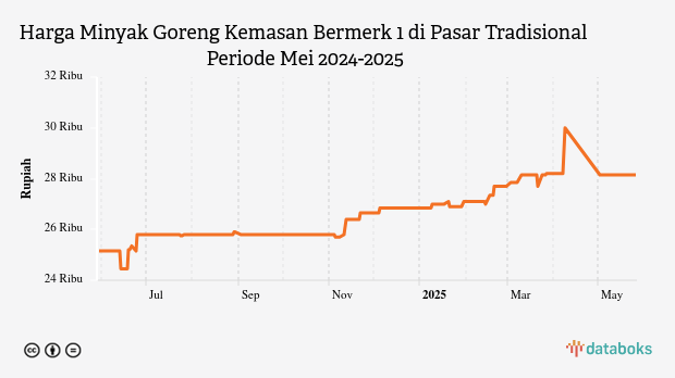 Adapun terhadap harga 30 hari lalu, perkembangan harga minyak goreng kemasan bermerk 1 harian di pasar tradisional tidak mengalami perubahan dari sebelumnya yang tercatat sebesar Rp28,15 ribu .