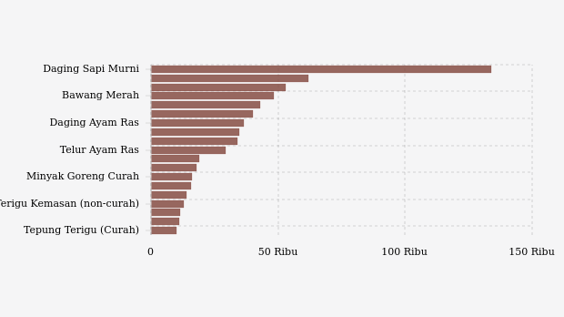- Gula Konsumsi: Rp18.820 per kg (naik 1,07%)
