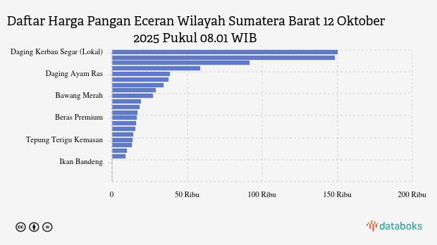 Berikut daftar lengkap harga 24 bahan pangan di Sumatera Barat menurut Bapanas 12 Oktober 2025 pukul 08.01 WIB.
