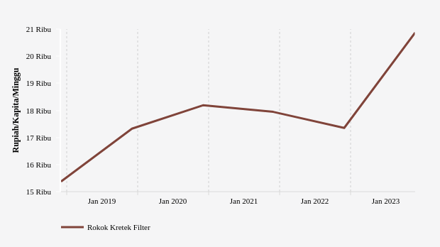 Rata-rata pengeluaran masyarakat di kabupaten Penajam Paser Utara untuk membeli rokok kretek filter pada 2023 sebesar Rp20,87 ribu per kapita per minggu. Nilai ini naik dibandingkan dengan pengeluaran tahun sebelumnya yang tercatat Rp17,35 ribu per kapita per minggu.